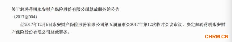 12月6日,这家老牌财险公司召开董事会临时会议审议,决定解聘蒋明永安财产保险股份有限公司总裁职务。