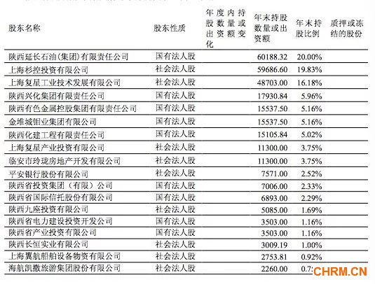 陕西国资委、复星集团两大股东持股相当