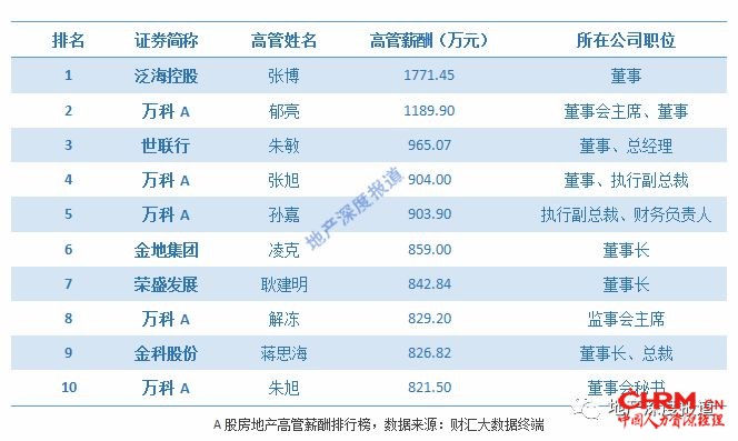 财汇数据显示,目前泛海控股董事张博位居2017年A股上市房企高管薪酬榜第一,其年薪高达1771.45万元。