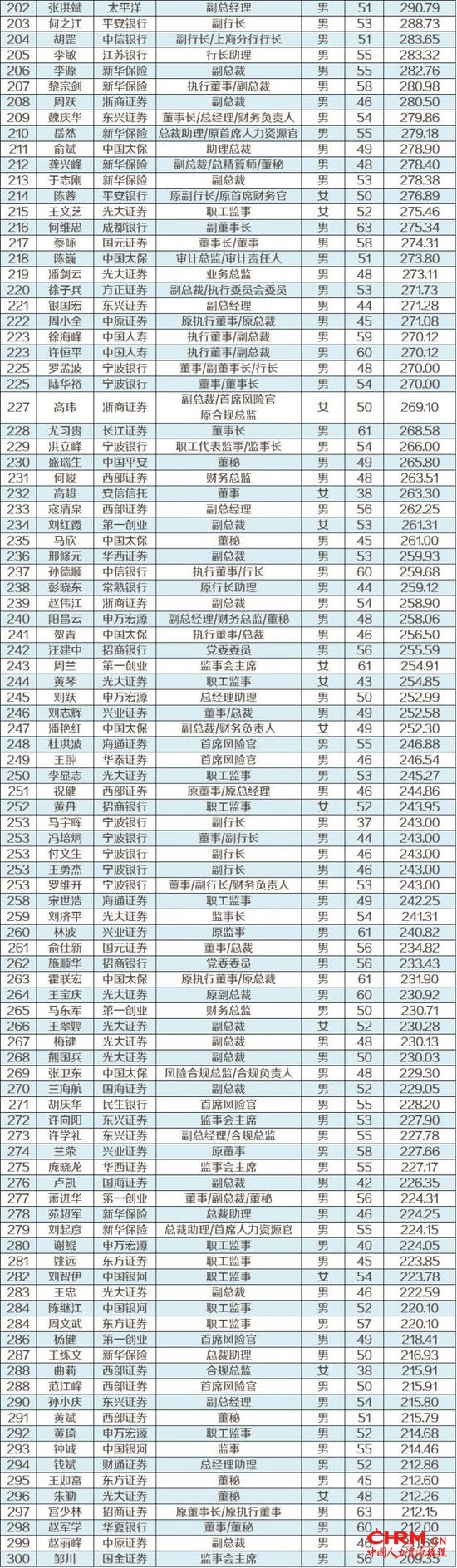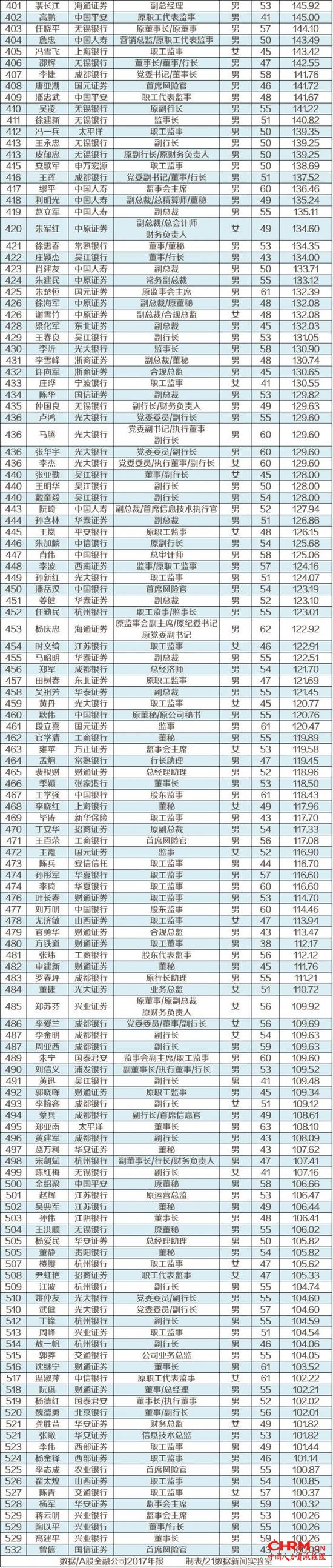 附A股金融机构百万高管薪酬榜
