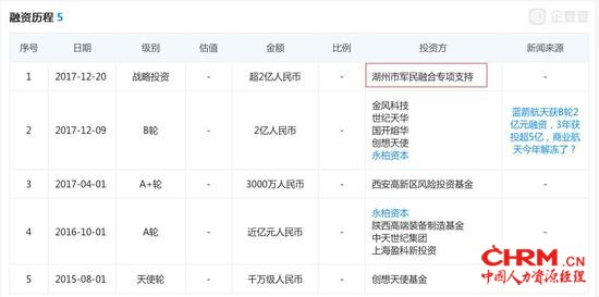 在这个前提下,蓝箭航天成立之初就获得了创想天使基金千万元天使轮融资,在2017年更是先后完成了上市公司金风科技(12.000, 0.07, 0.59%)(002202.SZ)领投的B轮融资和浙江湖州市军民融合专项基金超2亿元的资金支持。