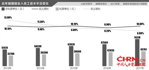除了户口,国企的薪资水平是另一大吸引力。李强表示,智联招聘监测数据显示,2018年秋季,国企平均薪酬为8466元,同比去年7968元约上涨6.25%,而全国平均招聘薪酬为7850元,同比上涨3.3%。