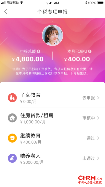 目前用友云人力服务个税专项申报相关功能可以实现无缝对接友空间、企业自有APP、微信,多种渠道助力企业实现员工个税专项附加扣除信息收集及审核。