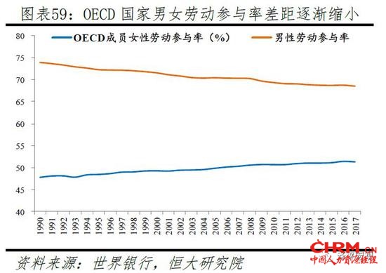 第四,加强女性就业权利保护,男女就业差距越小,生育率越高。OECD国家重视女性就业权利保护,如瑞典政府主导的公共服务事业为女性提供了大量的就业岗位,德国、韩国、日本、新加坡都为产后女性的再就业提供培训,澳大利亚通过立法保障女性的产后工作权利。根据世界银行,1990-2017年OECD成员女性劳动参与率(15岁及以上)从47.8%上升至51.3%,男女劳动参与率差距从26.1个百分点降至17.2个百分点。根据OECD数据,2014年OECD的男女就业率差距为11.8个百分点。一般而言,男女就业差距越小的国家,意味着女性的就业权利得到了更好地保障,女性生育的机会成本较低,生育率越高。如2014年瑞典男女就业率差距仅为3.4个百分点,总和生育率为1.88;而意大利男女就业率差距为18.2个百分点,总和生育率为1.37。2006-2016年OECD国家的男女收入中位数差距从15.6%下降至13.5%。中国对于女性就业权利的保障主要体现在不允许单位在女职工孕期、产期、哺乳期解除劳动合同,其他支持措施较少。1990-2017年中国女性劳动参与率从73.2%降至61.5%,劳动参与率差距从11.6个百分点扩大到14.6个百分点、呈扩大趋势。
