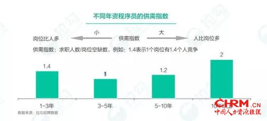 拉勾网《互联网人才白皮书(2019)》显示,从不同职类的角度来看,技术类人才对整体行业来说是最紧缺的。而年资方面,3-5年年资技术人才供不应求的情况最严重。