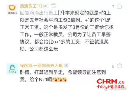 滴滴的此次人性化裁员也引发网友关注和讨论,除了调侃也有网友表示:“N+1激动成这样,可见违法裁员之广泛”。