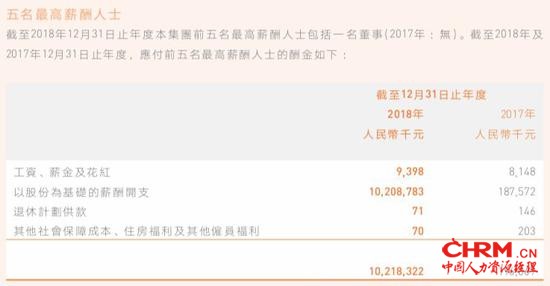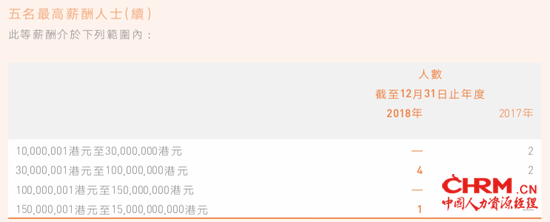 ink="" />而5名最高薪酬人士高达102.18亿元的酬金总额,与2017年的1.96亿元相比更是激增52倍,约占2018年集团酬金总额的60%。