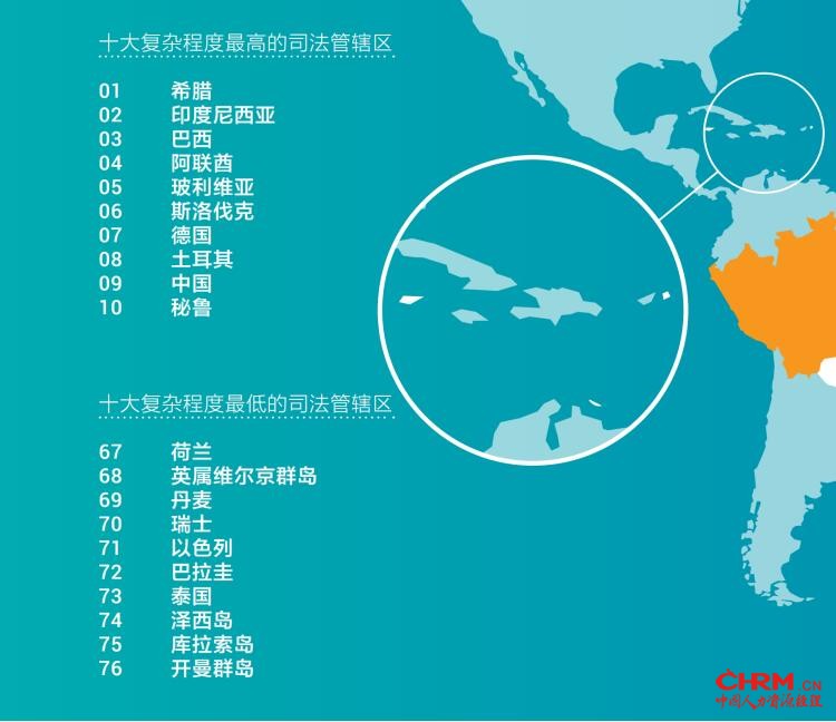 报告显示,中国在复杂性指数报告中排名第九,对外商逐渐呈现更加开放的投资环境。长期来看,中国的监管法规变化也对国际企业入华发挥着更加积极的作用。本次排名中,位列榜首的是因经济挑战而导致频繁变更法律且劳动法体系复杂的希腊,新兴经济体印度尼西亚和巴西紧随其后。而在所有76个司法管辖区当中,开曼群岛、库拉索岛和泽西岛成为全球商业复杂程度最低的地区。