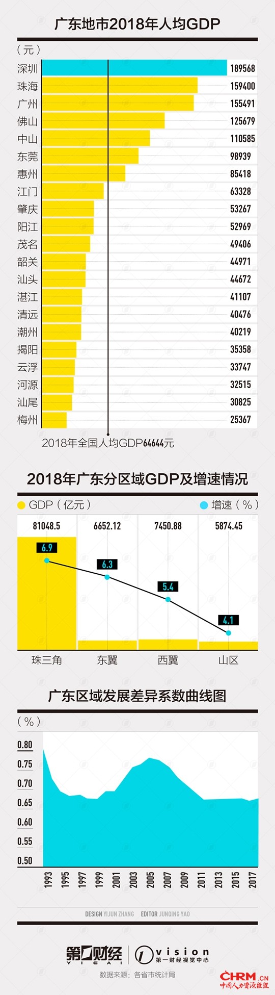 广东体改研究会副会长彭澎对第一财经记者分析,珠三角的集聚能力和吸附效应太强,优秀的人才、资金等要素都往珠三角集聚。另外,粤东、粤西不少地方在改革开放后都曾走了一些弯路,也影响了这些地方经济的发展。