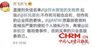 此事也很快引起了不少内地网民的震惊和愤怒,其中有航空博主就表示泄露旅客资料是香港严重的侵犯个人隐私行为,要求国泰航空彻查。
