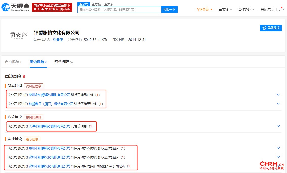 其中,其全资控股企业泉州市铂爵婚纱摄影有限公司曾因劳动争议而被他人或公司起诉,全资控股企业深圳市铂爵文化有限责任公司则曾因劳动争议、劳动合同纠纷而被他人或公司起诉。此外,铂爵旅拍数家子企业进行了简易注销或清算。