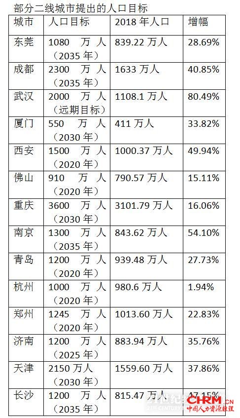 21世纪经济报道记者发现,和东莞一样,许多二线城市提出了“野心勃勃”的人口计划。