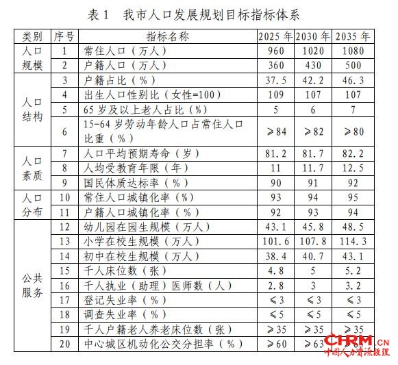 《发展规划》明确提出,实施积极的人口调控政策,保持人口增长与经济社会、资源环境相适应,实现有质量的稳步增长。2025年,常住人口达到960万人;2030年,常住人口达到1020万人;2035年,常住人口达到1080万人。