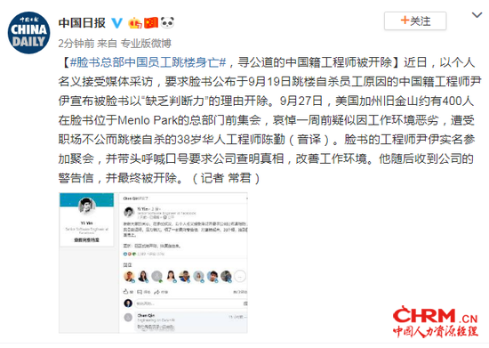 原标题:脸书总部中国员工跳楼身亡,寻公道的中国籍工程师被开除