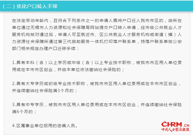 在针对非应届毕业生的“优化户口转入手续”中,规定了本科学历落户无社保落户门槛;而对大专学历的要求则为“并连续缴纳社会保险满3个月的”;中专学历要求为,“被我市市区用人单位录用或在本市市区创业,并连续缴纳社会保险满6个月的”。