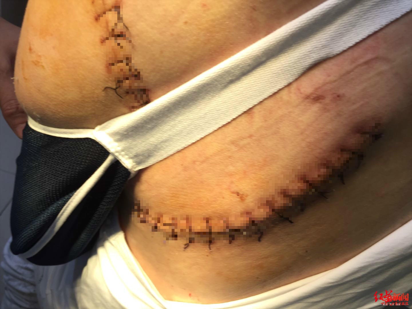手术后,钟科的伤口触目惊心(图片经过打码处理)