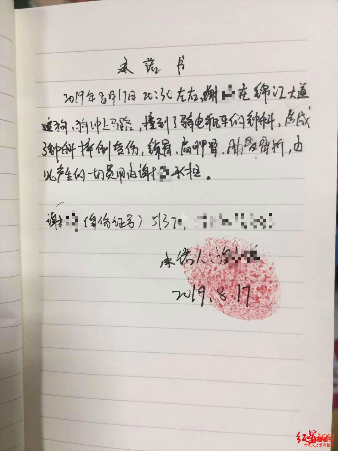 钟科说,出院回家后,他与谢女士协商了后续的医疗费、生活费、护理费等费用承担问题,谢女士曾答应由其全部承担;而事故发生当天,谢女士写下了“承担一切费用”的承诺书。但是,谢女士后来变卦了,拒绝再与他沟通和提供费用,“她让我去法院起诉”。