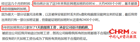 该作者指出自己在网易5年的工作中累计被强制加班大约达到了4000个小时,但公司方面称其所有的加班都不合规,因此最终也只拿到了1天的加班工资。