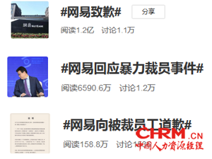 针对网络中热传的“网易暴力裁员”一事,网易方面先后三次发表声明予以回应。微博中#网易致歉#、#网易回应暴力裁员事件#、#网易向被裁员工道歉#成为热点话题,受到大量网民的关注和热议。
