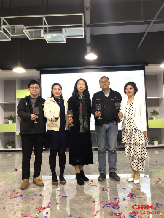 人才局代表人员(图左一和左二)、协会秘书长王惠芳(图左三)、协会党支部书记