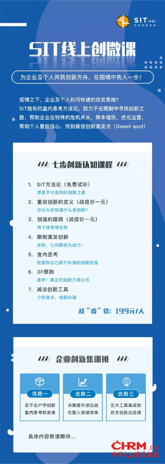 2月13日,SIT中国线上创新集训班已在千聊等平台陆续上架,方便学员和团队在线听课、学习和创新。