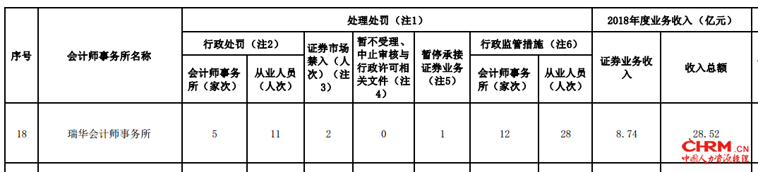 2019年11月,证监会披露《证券资格会计师事务所资本市场执业基本信息》,2016年1月1日至2019年6月30日,瑞华受到行政处罚的从业人员达到11人次,受到行政监管措施的从业人员达到28人次。