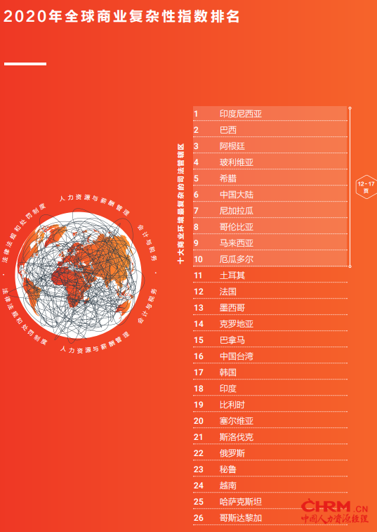 《2020年全球商业复杂性指数》对影响跨国企业经营的全球性趋势及77个司法管辖区的特异性进行了深入研究,重点对财务复杂度、合规复杂度和人力及薪酬复杂度进行分析,旨在帮助跨国企业对运营过程中需要遵守的国际商业规则和本地监管措施形成清晰的认识,在后疫情时代灵活、安全地把握国际市场机遇。