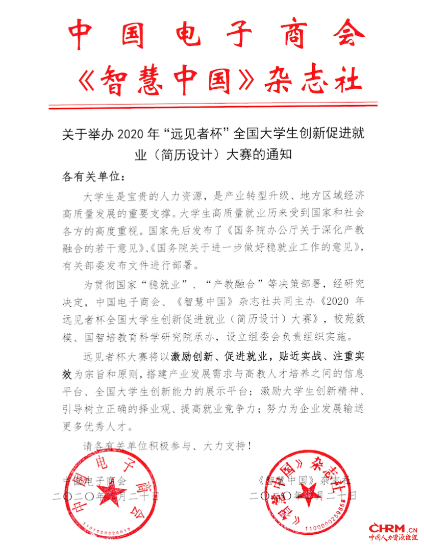 大学生是宝贵的人力资源,是产业转型升级、地方区域经济高质量发展的重要支撑。大学生高质量就业历来受到国家和社会各方的高度重视。远见者杯全国大学生创新促进就业(简历设计)大赛” 是由中国电子商会、《智慧中国》杂志社主办的以“促进全国大学生就业”为核心目标的全国性大赛。