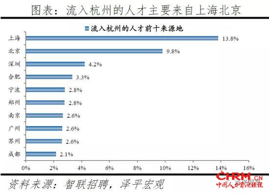 3 重点城市:深广杭宁渝汉人才净流入占比逐渐上升