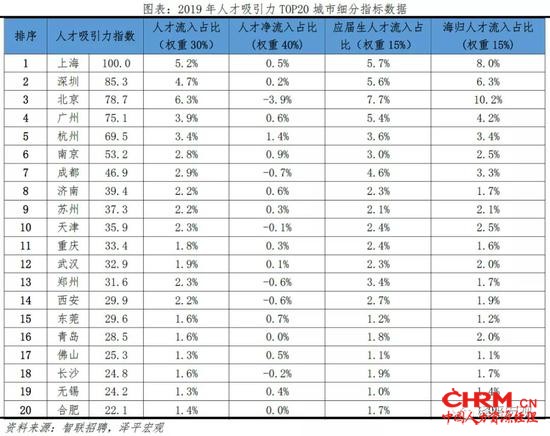 2.1中国最具人才吸引力城市100强:沪深京居前三