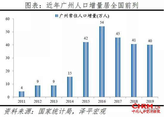 4)广州:2016-2019年人才净流入占比分别为0.3%、0.5%、0.5%、0.6%,人才净流入且持续稳定增长,主因广州发展速度较快、生活成本在一线城市中最低。广州常住人口增量总体呈上升趋势,2011-2019年从4万升至40万。2016-2019年广州人才流入占比基本稳定在4.2%左右,分别为4.2%、4.3%、4.2%、3.9%,2019年略有下降,人才流出占比持续下降,分别为3.9%、3.8%、3.6%、3.3%,流入大于流出,使得人才净流入占比分别为0.3%、0.5%、0.5%、0.6%,逐年上升。从来源看,人才向广州流入的前十大城市分别为深圳、北京、佛山、东莞、上海、长沙、成都、武汉、珠海、郑州,人才流入占比合计达50.8%。其中,深圳占比17.4%,珠三角城市有4个,合计占比29.6%。人才流入广州主要因为发展速度较快、生活成本较低。2019年广州GDP增速为6.8%,高于北京、上海、深圳的6.1%、6.0%、6.7%。广州的生活成本在一线城市中最低,根据英国经济分析智囊机构经济学人智库(EIU)发布的《2019年全球生活成本调查报告》,在全球133个城市样本中,上海与深圳排名并列第25位,北京、广州分别排名49、68位;2018年北京、上海、深圳、广州的房价收入比分别为27.8、21.5、23.8、14.8年,广州的房价和生活成本在一线城市中最低。2019年广州流入人才的13.3%、5.3%流入贸易、批发、零售、租赁业,以及服务业,明显高于其余9个重点城市。从去向看,广州人才外流的前十大城市分别为深圳、佛山、东莞、北京、上海、珠海、杭州、中山、惠州、长沙,人才流出占比合计达57.2%。其中,深圳和佛山占比分别为18.6%、12.1%,珠三角城市有6个,合计占比44.9%,与北京13.6%的人才流向京津冀都市圈、上海25.9%的人才流向长三角都市圈和深圳32.3%的人才流向珠三角都市圈相比,广州人才流向珠三角都市圈城市的比重显著更高。一方面是因为珠三角多为粤语城市、文化相近,另一方面是广州高校数量较多,广东省人才为求学向广州集聚,毕业后从广州回流至省内其他城市。根据教育部数据,广州普通高校数、211高校数分别为37、6所,分别排名第5、6名;根据国家统计局数据,2018年广州普通本专科在校生人数为108.6万人、位列全国第一。