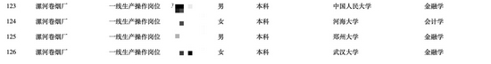 剩余的135人,均被河南中烟下辖7家卷烟厂的“一线生产操作岗位”拟录用。