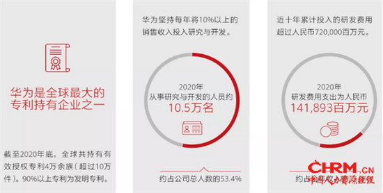 这背后是华为对研发人才的渴望,据财报显示,截止2020年底,华为的研发人员数量再创历史新高,达到10.5万名,占公司总人数的53.4%,人均年薪高达70.6万元。另外,2020年华为的研发费用达到1419亿元,创出历史新高,近十年累计投入的研发费用超7200亿元。
