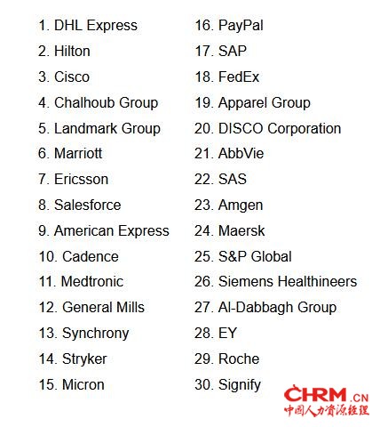 在跨国企业类别中,连续第二年蝉联榜首的是DHL Express和酒店管理公司希尔顿 (Hilton)——两家公司分别保持了2020年的第一和第二名的排名。