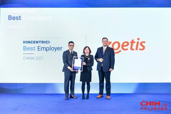 上海2021年12月2日讯-- 全球领先高管寻聘公司Spencer Stuart旗下的Kincentric揭晓了“2021年中国最佳雇主榜单”,经过多轮调研、访谈、评分及审核,硕腾中国从众多跨国企业中脱颖而出,再度获得Kincentric最佳雇主认证,并荣获“组织敏捷奖”。硕腾大中华区总经理王庆先生、人力资源负责人杨燕女士与几位员工代表受邀出席了颁奖典礼。