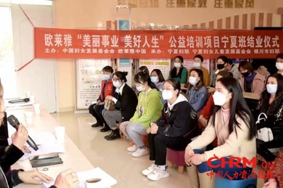 宁夏银川2022年3月11日讯 -- 在全新使命“创造美,让世界为之所动”的驱动下,欧莱雅集团在赋能女性之美的道路上不断探索和前行。去年9月,欧莱雅中国与中国妇女发展基金会签署了“美丽事业,美好人生”美妆公益培训项目的“新五年”战略合作,并积极探索升级支持女性就业、创业的新思路 -- 首次深入乡村振兴的主阵地西北地区,在宁夏成立首个培训点;深耕关键技能培训领域,增加电商技能培训;启动“美业孵化计划”试点,实现就业、创业的精准对接和输出,以期通过“深耕+孵化”的“西北模式”,帮助乡村女性拓宽职业道路,进一步激发她们就业、创业的能力、活力和潜力,促进乡村振兴释放澎湃动能。今天,恰逢第112个“三八”国际妇女节,宁夏银川班的30位学员迎来了她们的毕业典礼,即将开启她们人生追梦之旅的全新篇章。