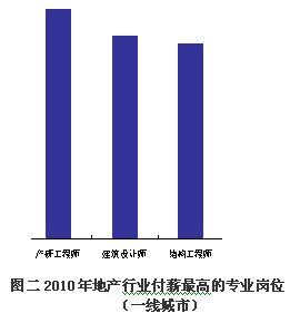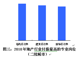 四个一线城市的专业岗位中,付薪最高的是产研工程师,其次是建筑设计师和结构工程师,见图二。二线城市中,设计类的专业岗位付薪最高,见图三。
