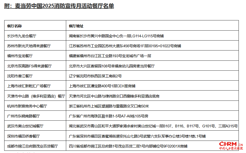 2025年消防宣传月期间,麦当劳全国超过7,300家餐厅同步上线消防安全主题门贴,让消防知识通过日常就餐场景触达更多消费者,培养社区消防安全意识。