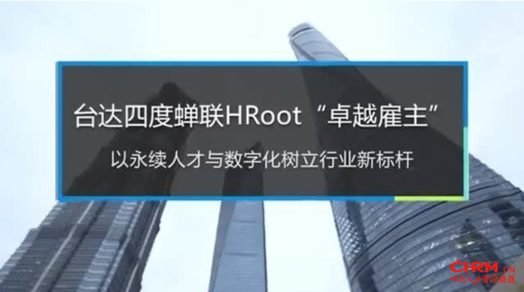 台达从900多家企业中脱颖而出,四度蝉联HRoot"卓越雇主",HRoot执行主编管怡静(右)为台达颁奖,台达全球人资长陈启祯(左)上台领奖并发表获奖感言。