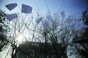 怀柔劳务市场,过了中午,集市就基本散了。招工成功率不高,很多招工广告散插在枯枝上。