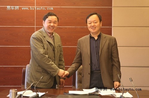 天缘电子总经理吴宏(右)与湖北交院院长李全签订合作协议