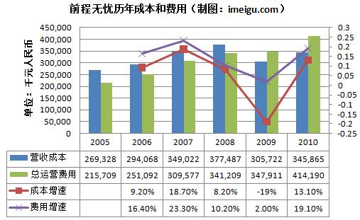 从历年成本来看,营收成本方面,2005年到2008年稳定增长,受金融危机影响,2008年增速降至8.2%,2009年更是降低19%。总运营费用也缓慢增长,2005年到2009年的年均复合增长率为12.7%。