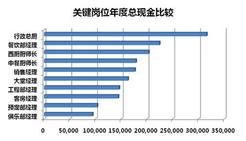 根据众达朴信薪酬调研报告显示,五星级酒店总监层员工的年度总现金的中位值为325943元,涨薪幅度为13.4%,总监层员工属于关键核心层员工,对于星级酒店来讲尤为重要,这个层级的员工不仅薪酬水平高,而且福利待遇也不错。经理层员工年薪中位值为174358元,外资酒店该层级员工年薪超20万元,主管和领班层年薪中位值为64342元和38245元,分别高出非星级酒店28%和20%。基层服务员年度总现金为26042元,平均月薪在2000元以上,但随着基层员工“招工难”现象的出现,该层级员工涨薪成为必然。