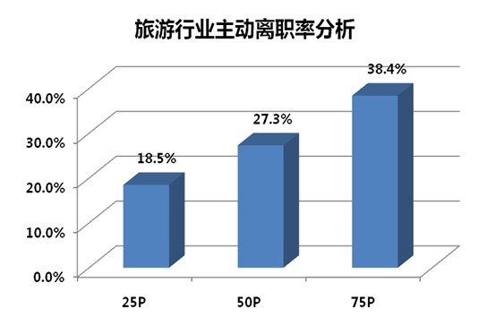 根据众达朴信监测数据显示,近三年旅游行业的离职率一直处于全行业中位以上,2011年全国旅游行业离职率中位值为27.3%,基层岗位是主要的离职群体,如导游,餐饮客房服务人员等,一方面是因为岗位普遍性强,这些岗位可以在全行业流动;二是因为旅游行业基层岗位普遍存在职业生涯发展通道缺失,企业薪酬福利无法体现员工关怀等问题。