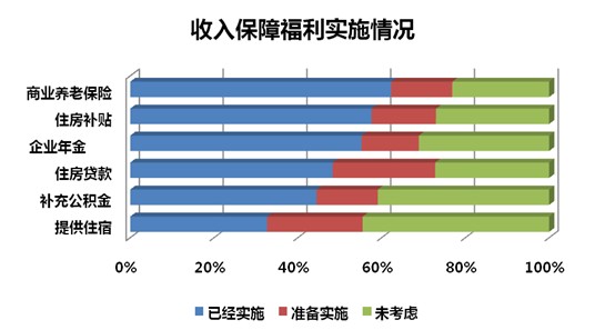 从收入保障福利来看,有近60%的企业为员工提供商业养老保险,超过40%的企业提供住房补贴、企业年薪、住房贷款和补充公积金。这四项福利对于激励工作5年以上的员工效果最优。