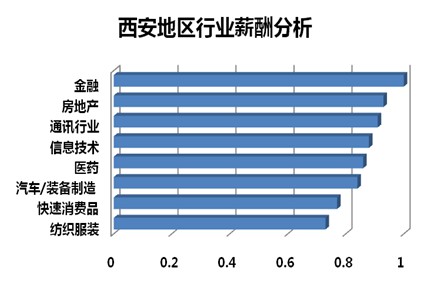 金融和房地产行业在一二类城市中领跑全行业已经司空见惯,但与其他行业的薪酬差距正在缩小。以西安地区金融行业薪酬水平为基数,西安支柱产业的通讯行业薪酬系数为0.91,与房地产行业的0.93已经非常接近。信息技术和生物医药是西安地区未来大力发展的两个主要行业,人才竞争加剧,薪酬系数分别为0.88和0.86;汽车和装备制造行业近年薪酬涨幅较快,薪酬系数为0.84;受限于行业特性,快速消费品和服装纺织行业薪酬水平较低,薪酬系数分别为0.77和0.73。
