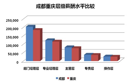 中国人力资源经理讯 成渝经济区产业基础较好,资源优势丰富,不仅是中国西部经济实力最强的地区,也毫无疑问的成为西部大开发的经济高地。但中高级人才的缺失制约了成渝地区企业竞争力和发展潜力。据调研显示,地区软件研发人才缺口达到50%以上,高级研发和管理人员大部分集中在北京和上海,成渝两地人才竞争优势薄弱;这种“人才荒”也出现在互联网、网络游戏、通讯、集成电路和动漫等电子信息行业中。对于未来以高新技术为支柱产业的成渝地区企业来说,如何吸引和保留关键核心人员是目前要解决的首要问题。那么成渝两地的薪酬水平如何,各行业间的薪酬差距有多大,我们从北京众达朴信管理咨询有限公司发布的《2011年成渝地区薪酬福利调研报告》中,可以看到成都和重庆地区的一些薪酬状况。