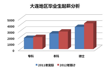随着人才竞争的加剧,企业纷纷在人才储备上加大了力度,毕业生起薪水涨船高。根据众达朴信监测数据显示,2011年大连地区本科和硕士毕业生起薪分别为2560元和3640元,涨薪幅度超过10%;预计2012年本科和硕士毕业生起薪将分别超过2800元和4000元,研发类毕业生的起薪最高,本科毕业生起薪将达到3500元。