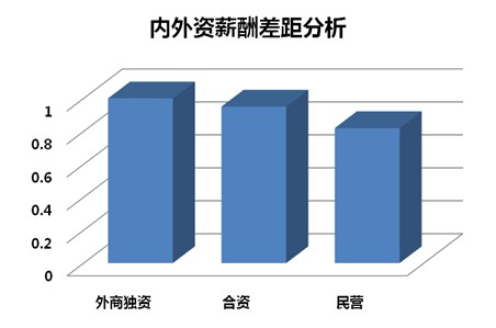 人才是北京向国家化城市发展的最大瓶颈之一,未来产业发展的高端化、国际化,迫切需要一支拥有具有国际视野和创新思维的高素质人才队伍作支撑,所以吸引和保留高素质人才是未来北京地区经济发展的重要前提之一。本土企业与外资企业的竞争不仅体现在先进工艺技术和管理理念上,人才的竞争更有长远的意义。无疑提高薪酬福利待遇是抢夺人才最为有效手段之一。根据众达朴信调研数据显示,以外商独资薪酬水平为基数,合资企业薪酬差距为0.95,欧美独资企业薪酬水平最高;民营企业薪酬系数为0.82,已经逐渐缩小了与外商控股企业的薪酬差距,2009年和2010年,民营企业该数值分别为0.76和0.79。