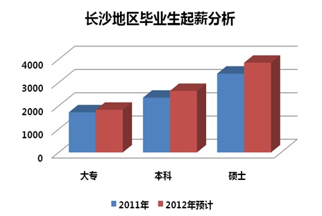 近两年,长沙地区毕业生起薪涨幅较快,均超过了10%。根据《众达朴信毕业生起薪调研报告》显示,2011年长沙地区本科毕业生起薪中位值达到2350元,预计2012年本科毕业生起薪将突破2600元;此外,企业纷纷加强高学历、高素质人才的引进,2012年预计硕士毕业生起薪中位值将接近4000元,部分研发岗位,起薪将突破5000元。